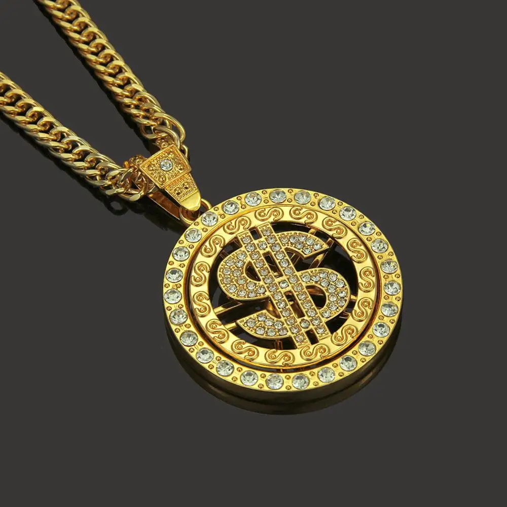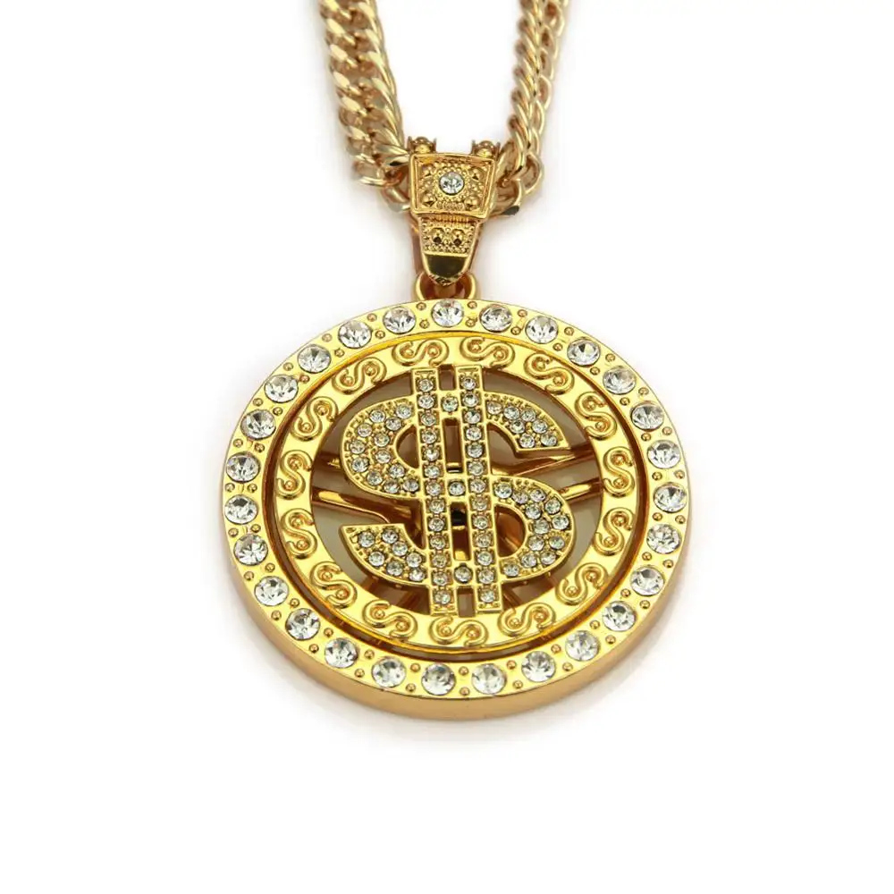 BEST SELLER Hip Hop Stainless Steel Iced Out Pave Cubic Zirconia US Dollar Money Pendant With Chains Gold Color