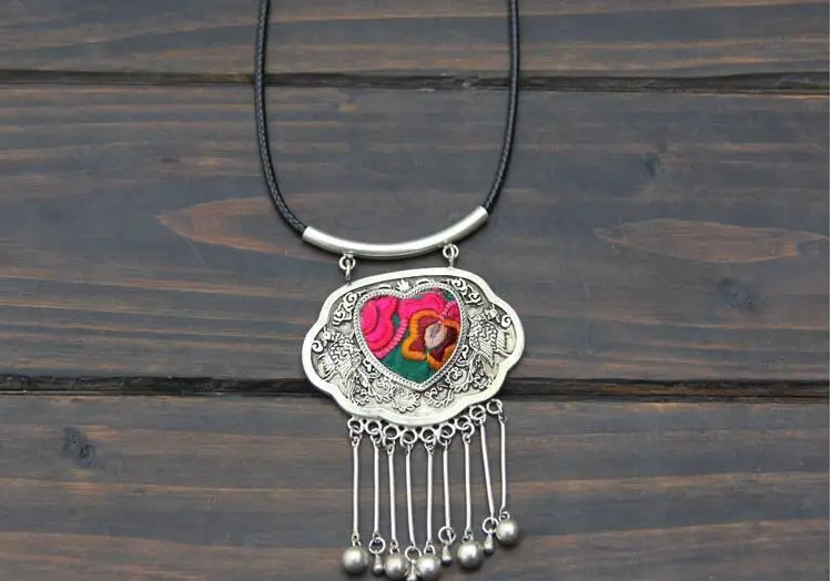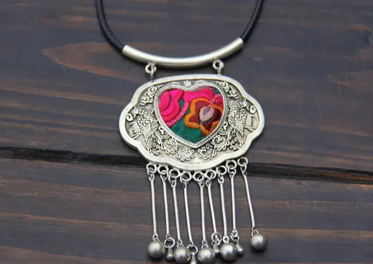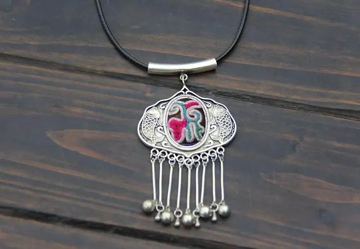 Best Seller Minority Miao silver embroidered retro jewelry handmade necklace pendant