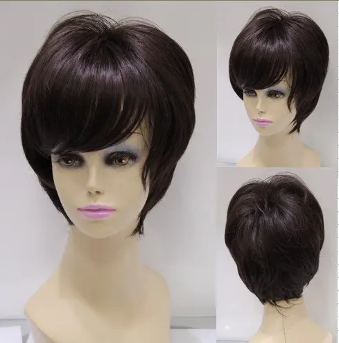 HIGH QUALITY parrucca peruvian Dark Brown gray heat resistant Women Ladies Mitsutada Short Cosplay peruca hair q