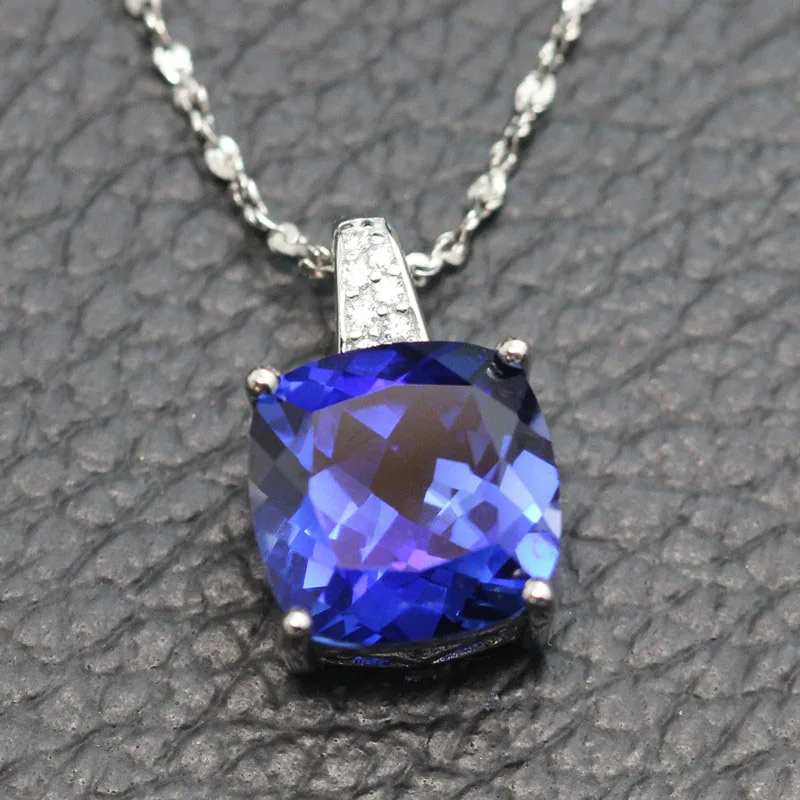 Square shape Prussian blue stone necklace pendants corundum stones inlay S925 silver women jewelry