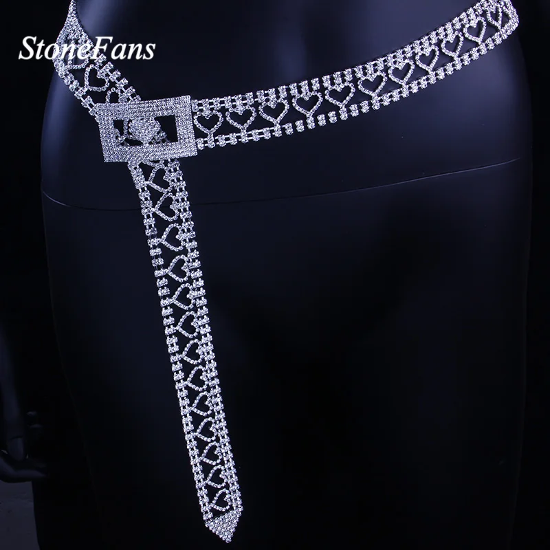 HIGH QUALITY StoneFans NO Buckle Charming Rhinestone Belt for Prom Dress Sexy Heart Shaped Party Club Waistband