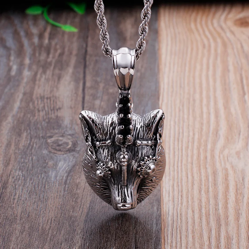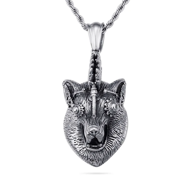 Best Seller Wolf Head necklace for men women pendant W chain biker cool jewelry animal charm wholesale vintage