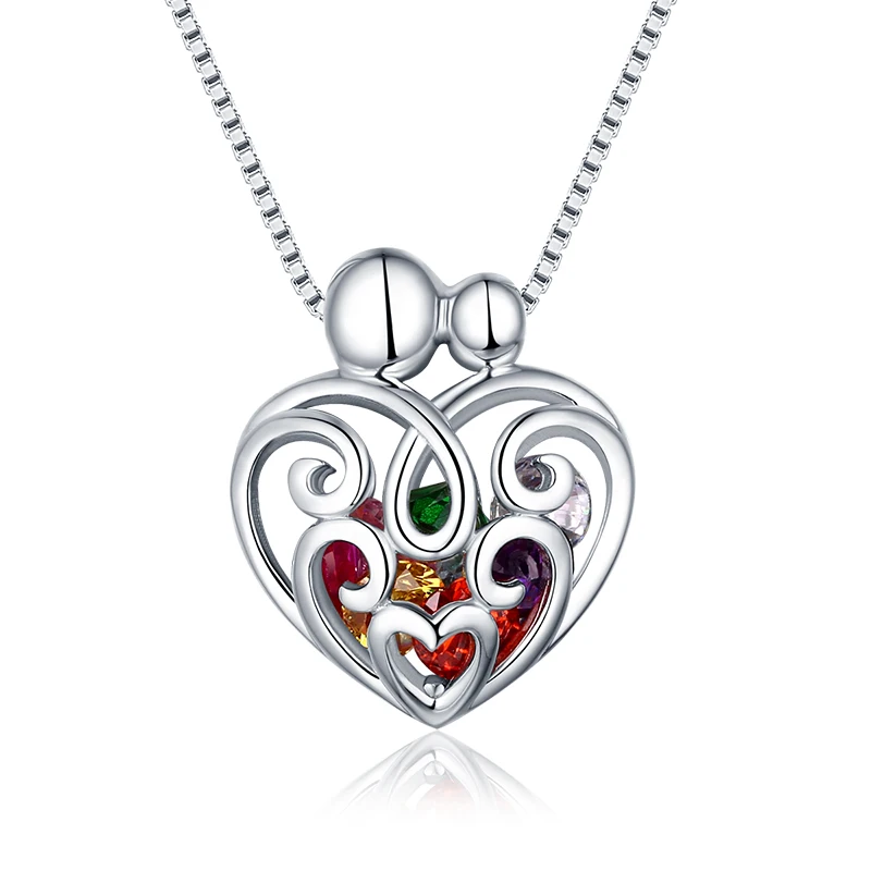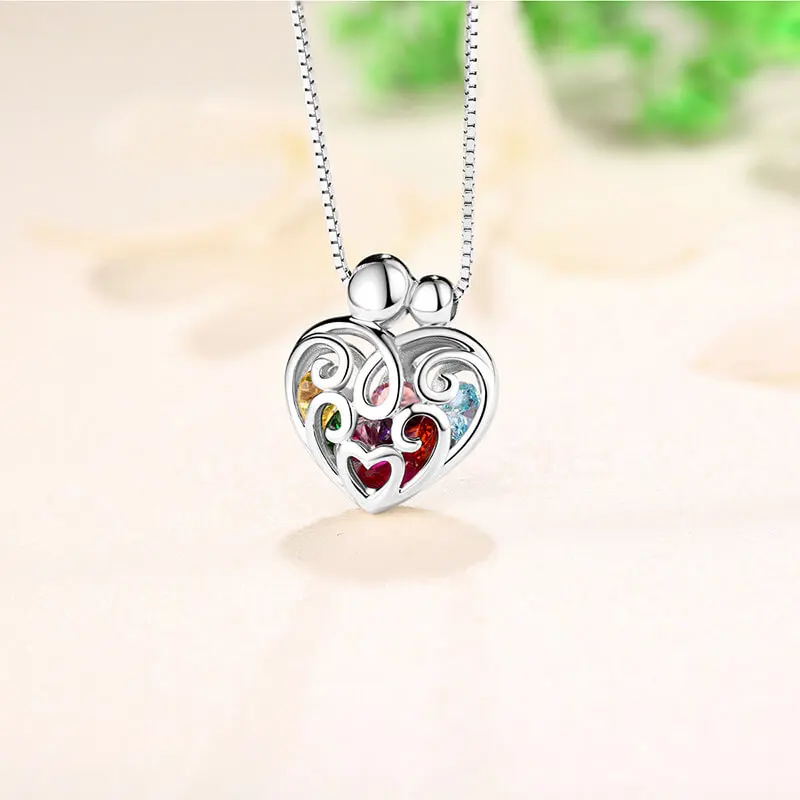 BEST QUALITY Wholesale Cage Necklace With Birthstones Gift For Mom Sterling Silver Family Necklace Jewelry For M