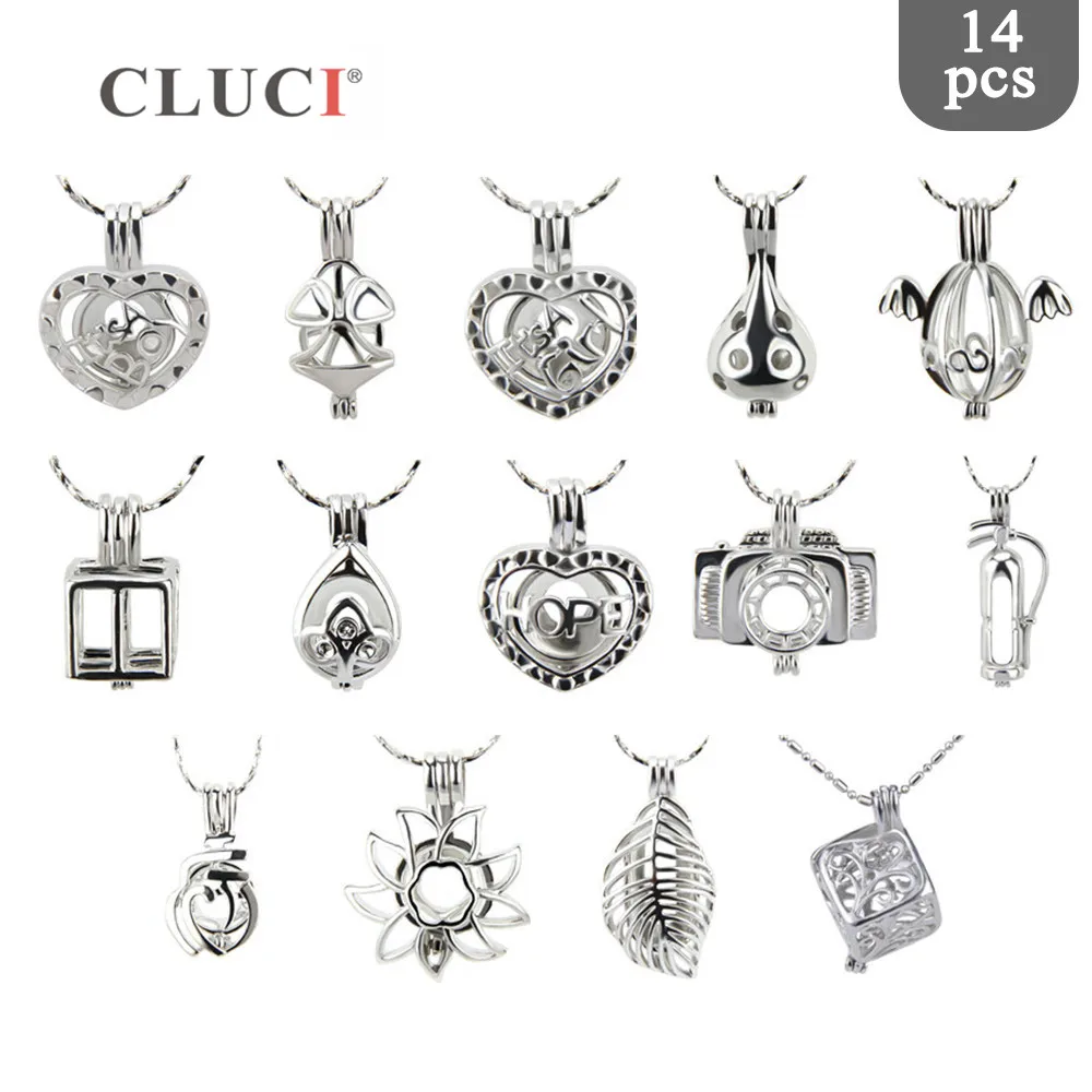 HIGH QUALITY CLUCI 14pcs/set Mixed Wholesale Charms Silver Plated Wish Pearl Locket Women Fashion Pendant Jewelr