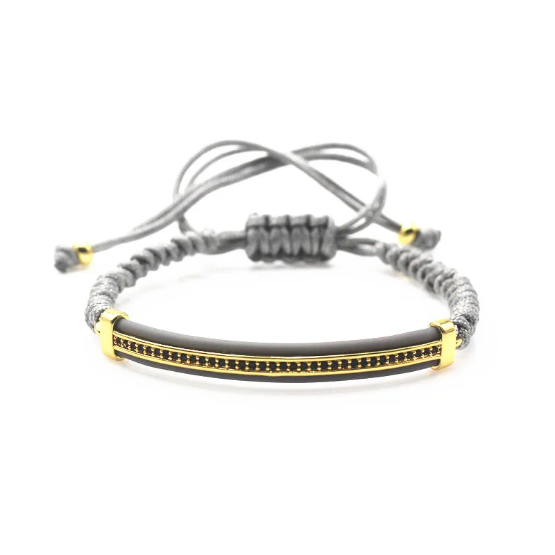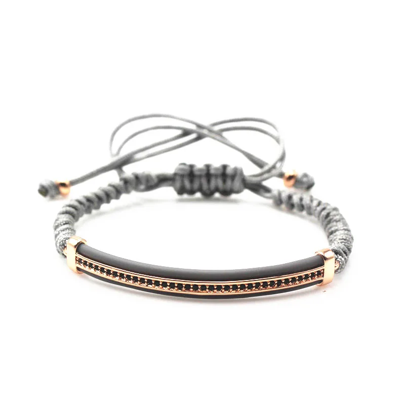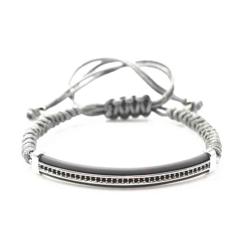 HOT SALE Famous Brand Mens Brand Fashion Jewelry Micro Pave Black CZ Long Tube Grey Leather Braided Macrame