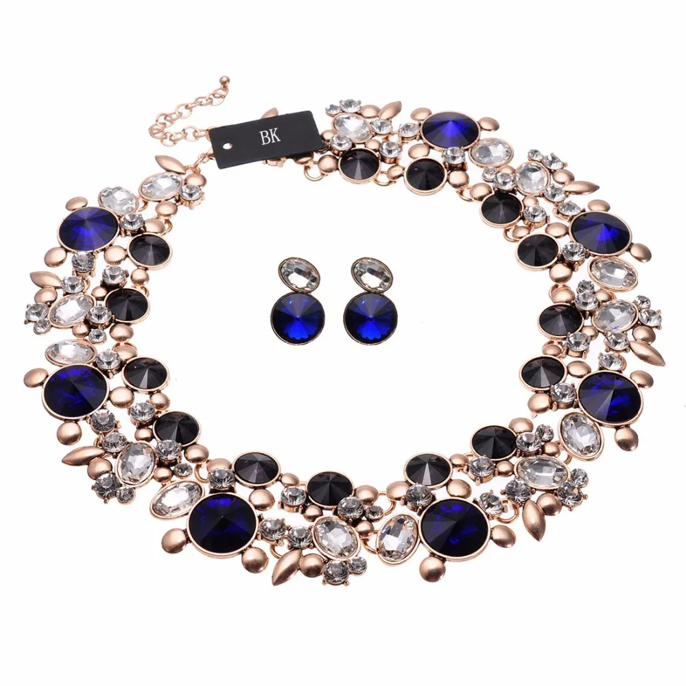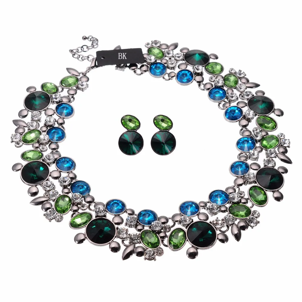 HOT SALE Fashion Multicolor Jewelry Chain Glass Crystal Chunky Choker Statement Pendant Bib BK Necklace