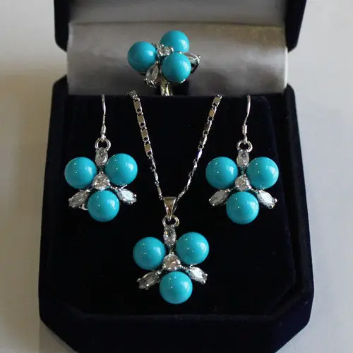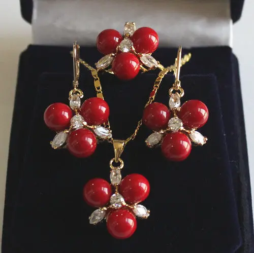 Prett Lovely Women's Wedding HDT558 shipping>>>>>>Charming 8mm Pink Shell Pearl Earring Pendant Rin