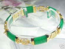 Review mujer wedding Gift word Love Exquisite green gem 18KGP Gold Lucky Bracelet 7.5" 19cm Girl MEN Quart