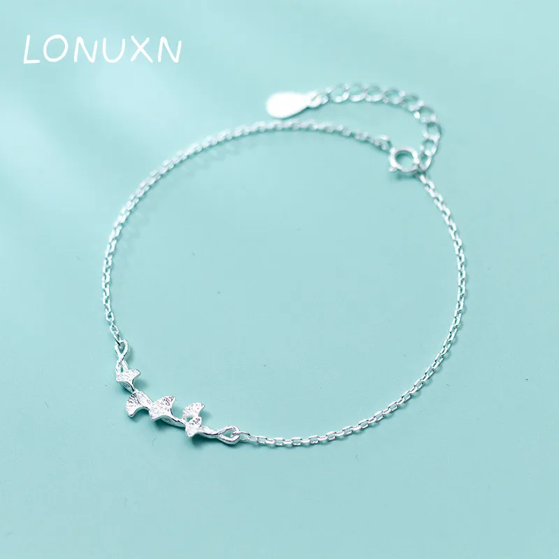 HOT Sale 925 Sterling Silver Ginkgo Leaves Bracelets & Bangles High Quality Elegant Lady Gift Sterling-silve